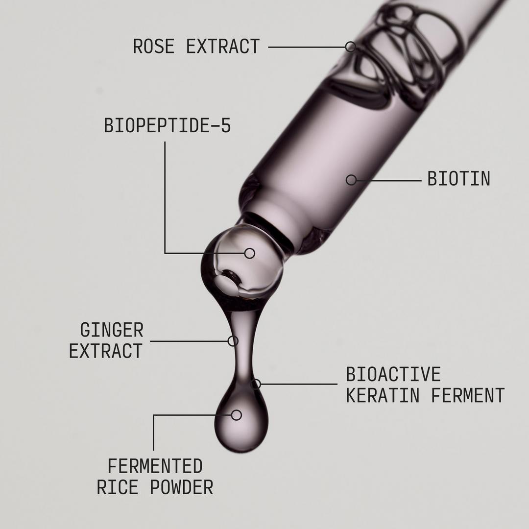 Water/Eau/Aqua, Propandiol, Butylene Glycol, Glycerin, Acetyl Tetrapeptide-3, Biotinoyl Tripeptide-1, Lactobacillus/Honey/Keratin Ferment, Saccharomyces/Rice Ferment Filtrate, Nicotiana Benthamiana Octapeptide-30 sh-Oligopeptide-2, Mentha Piperita (Peppermint) Leaf Extract, Biotin, Nicotiana Benthamiana Hexapeptide-40 sh-Polypeptide-9, Nicotiana Benthamiana Hexapeptide-40 sh-Polypeptide-86, Rosa Centifolia Flower Extract, Panthenol, Trifolium Pratense (Clover) Flower Extract, Zingiber Officinale (Ginger) Root Extract, Melia Azadirachta Leaf Extract, Melia Azadirachta Flower Extract, Coccinia Indica Fruit Extract, Corallina Officinalis Extract, Leuconostoc/Radish Root Ferment Filtrate, Dextran, Sodium Phytate, Fragrance/Parfum, Citric Acid, Potassium Sorbate, Ethylhexylglycerin, Phenoxyethanol, Linalool