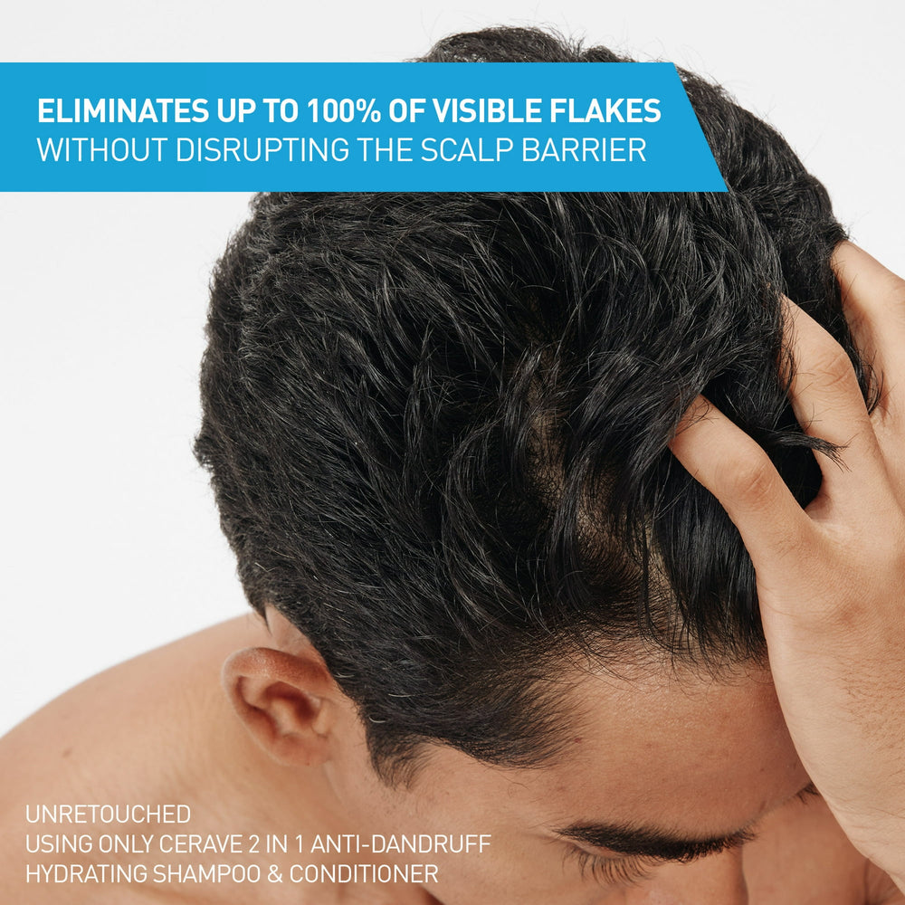 CeraVe 2-in-1 Anti-Dandruff Hydrating Shampoo and Conditioner eliminates up to 100% of visible flakes while also reducing itching and irritation with regular use.