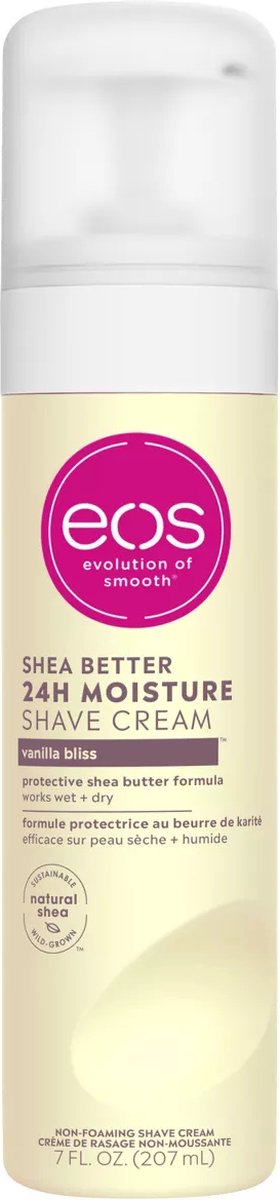 eos Shea Better Women's Shave Cream - Vanilla Bliss provides a silky-smooth shaving experience, enriched with nourishing shea butter and a delightful Vanilla Bliss fragrance. This shave cream keeps your skin hydrated and cared for during shaving, leaving it smooth and soft without irritation. The creamy texture makes shaving easier and ensures a comfortable, effortless glide.